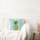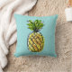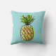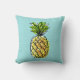Cet oreiller de Jeu amusant présente de l'ananas tropical aquarelle avec des pois blancs sur un coussin bleu turquoise.