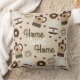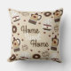 Coussin "Home sweet Home" avec mignonne tasse de café à vapeur illustrée et pot de café assorti décoré de coeurs et de beignets. Brun chocolat à l'envers.