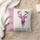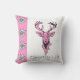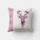Accentuez votre maison avec ce coussin fait sur commande de concepteur de style campagnard moderne élégant et élégant comportant une tête rose et des andouillers de cerfs communs sur l'arrière - plan blanc et une rayure latérale rose molle décorée des fleurs alpines blanches d'edelweiss. Texte indiquant la "vie à la campagne". Belle idée de cadeau et décor à la maison aussi pour Noël ou toute autre occasion. Fait main aux Etats-Unis ! ! ! Un beau cadeau pour vos amis, famille tous les produits de MoJo d'Américain sont produits par les mères célibataires viable employées aux Etats-Unis et contribuent à casser le cycle de la pauvreté pour des mères célibataires et leurs enfants.