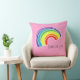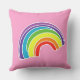 Le mignon arc-en-ciel sur coussin rose dit RAINBOW LOVE.