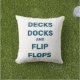 Ce coussin extérieur amusant est agrémenté de la citation "Decks Docks and Flip Flops", ce qui le rend parfait pour le bateau, le chalet, la maison de plage, le pont ou le bord de la piscine.