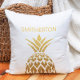 Ananas en or glittery élégant et tendance sur décorateur blanc jetez un oreiller personnalisé avec votre nom de famille.