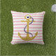 Coussin Ancrage or rose vif, rayures blanches nautiques