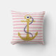 Ancrage parties scintillant or bleu rose et blanc rayures nauséabond oreiller jettent nautique. L'élément principal de ce design nautique d'été est l'ancre d'or.