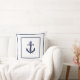 Jetez l'oreiller en bleu marine et blanc avec une empreinte d'ancre. Customisez cet objet ou achetez tel quel.