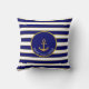 Coussin Ancre familiale sur la Marine Bleu & Blanc rayé