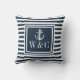 Un oreiller design avec ancre, des initiales monographiques personnalisées et des rayures bleues et blanches de style marine. Vous pouvez personnaliser les initiales et customiser la couleur à une couleur de votre choix. Conçu par Thisisnotme©