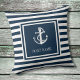 Coussin Ancre nautique Nom du bateau Marine Blue Striped