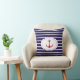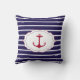 Coussin Ancre rouge de rayures blanches bleu-foncé
