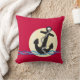 Ce coussin comporte un graphique d'une ancre avec une corde, un soleil rayé jaune et blanc et plusieurs lignes des vagues d'eau bleue tous sur un arrière - plan rouge. Cette grande conception nautique voudrait grand en n'importe quel cottage de lac ou d'océan.