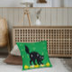 Coussin Animal Chat Noir Sur Vert Blanc Jaune Mélange Mode