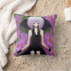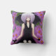 Un accent amusant lancer oreiller fait dans un arrière - plan rose floral, avec des graphiques d'une chauve-souris de style goth anime ou fille de style vampire, avec cheveux roses et oreilles de chauve-souris. Super idée cadeau pour elle.