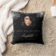 Coussin Anniversaire noir photo personnalisée argent nom d