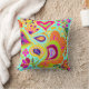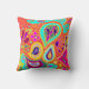 Turquoise et orange sur ce coussin bilatéral, accents de chaux, jaune, rose indien. Conception de Jolie Frank