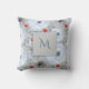 Coussin florale couleur argent bleu avec d'élégants accents de script avec de belles fleurs branchées et un style vintage, parfait pour les vacances, printemps, automne, automne, ou décor maison d'hiver.