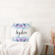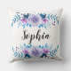 Jetez l'oreiller avec le design romantique bleu & violet aquarelle fleurie wreath et nom personnalisable ou monogramme.