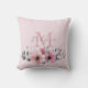 Botanique chic floral élégant plante feuillage gris rose pâle fleur monogramme jeter oreiller.