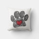 Empreinte de patte de chien et aquarelle du coeur en rouge, noir et gris. Jetez des oreillers sur mesure pour les maisons et les entreprises. Idée cadeau pour les amoureux de les chiens.