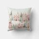 Une aquarelle rose et menthe Décor hivernal avec des maisons douillettes, des arbres de Noël et de la neige!
