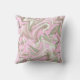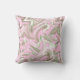 Coussin imprimé avec peinture acrylique originale en rose tendre, vert sauge et blanc.