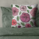 Coussin Aquarelle et fleurs d'encre - rose et vert