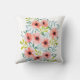 Fleurs roses d'aquarelle et illustration feuille verte/bleue sur l'oreiller à lancer.