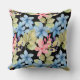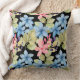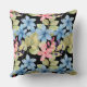 Coussin Aquarelle Florale Rose Et Bleu Pastel Sur Noir