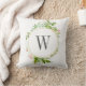 Coussin Aquarelle Florale Sauvage Vert Feuillage Monogramm