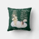 Cet oreiller de Noël ou de Noël personnalisé offre une aquarelle d'hiver chaude et confortable. Deux mignons petits animaux de forêt, un hérisson et un lapin, font du patin à glace parmi les arbres. L'arrière - plan est une riche couleur verte de forêt.