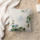Ce charmant oreiller à la maison présente une copie d'une délicate aquarelle botanique japonaise de tiges aux fleurs bleues simples. Personnalisez-le avec votre propre nom et votre initiale.