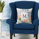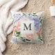 Coussin Aquarelle monogramme bleu rose printemps floral