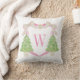Coussin Aquarelle rose et vert Noël Monogramme Crest