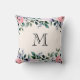Coussin avec un joli design floral fait d'aquarelles. Fleurs de jardin roses, violettes et vertes. Votre monogramme initial au centre.