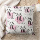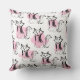 Coussin Aquarelle rose vif noir brosse coups de chat lance
