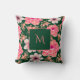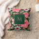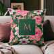 Coussin florale vert rouge aquarelle avec détails de script élégants avec de belles fleurs branchées et une touche vintage, parfait pour les vacances, printemps, automne, ou décoration maison d'hiver.
