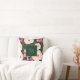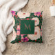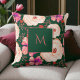 Coussin florale vert rouge aquarelle avec détails de script élégants avec de belles fleurs branchées et une touche vintage, parfait pour les vacances, printemps, automne, ou décoration maison d'hiver.