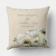 Cet oreiller romantique à jets floraux de style vintage est doté d'un arrière - plan de papier parchemin rustique avec des fleurs de ranunculus aquarelle. Un délicat bouquet de ranunculus et de verdure est représenté sur le fond. Des exemples de noms d'un couple marié et de date mariage sont imprimés ci-dessus. Vous pouvez personnaliser le coussin pour inclure vos propres noms ou texte personnalisés.