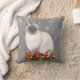 Grande conception d'oreiller jetable pour les amoureux de les chats caractéristiques aquarelle portrait de chat siamois blanc et gris avec la bordure inférieure NOEL festive sur les flocons de neige gris et blanc arrière - plan