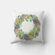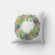 Agrémentez votre mobilier avec cet oreiller à jetons orné d'une luxuriante couronne de succulents, de fleurs roses, rousses et pêche et de touches de feuillage violet.