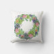 Agrémentez votre mobilier avec cet oreiller à jetons orné d'une luxuriante couronne de succulents, de fleurs roses, rousses et pêche et de touches de feuillage violet.