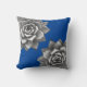 Cet oreiller lance deux succulents gris placés sur un arrière - plan bleu saphir.