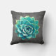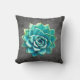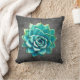 Un aqua succulent sur un arrière - plan gris moody orne cet oreiller de lancer.