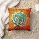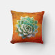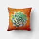 Cet oreiller à jetons présente un aqua succulent avec une pointe de lavande encadré par un arrière - plan fougueux d'orange rouillé.
