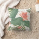 oreiller tropical moderne minimaliste avec quelques grands feuilles de palmiers séchés et fleurs d'hibiscus magnifiés sur fond blanc contemporain. Un nouveau tour vers un thème tropical. Vous pouvez également choisir une version zippée, coton ou extérieure de ce coussin dans le menu déroulant tissu à côté du produit.