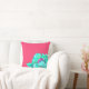 Aquarelle Turquoise Moderne Fleur De Pavot Sur Fuchsia Jetez L'Oreiller. Fleur turquoise couleur eau avec arrière - plan fuchsia. Vous pouvez customiser l'arrière - plan dans ce design à votre préférence.
