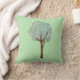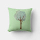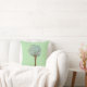Un oreiller vert clair pour les amoureux de la nature avec une aquarelle illustrant un arbre.