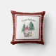 "Arbre brillant de lanterne rouge de Noël, Jetez l'oreiller à la maison Décor." Coussin de nom de famille personnalisé, décoration à la maison. Noir rouge et gris Plaid est combiné avec un joli gnome gris et rouge avec une lanterne et des arbres avec le texte "Laisser briller votre lumière". OEuvre d'aquarelle par Audrey Jeanne Roberts, artiste reconnue internationalement, copyright.