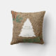 Un design rustique à thème de la pinède avec une texture imitation burlap dans l'arrière - plan accompagné de cônes et branches de pin vintage ainsi qu'une simple silhouette blanche d'un arbre de Noël et votre texte personnalisé. Idéal pour les cadeaux de Noël et la décoration. Customisez le coussin de Noël avec votre texte et faites-le vous-même.
