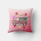 Coussin de Noël avec vieux camion vintage transportant un arbre de Noël avec des lumières de Noël. Joli décor de vacances.
