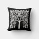 Coussin dans un stylisé, feuille et branche, arbre de vie design en blanc sur noir